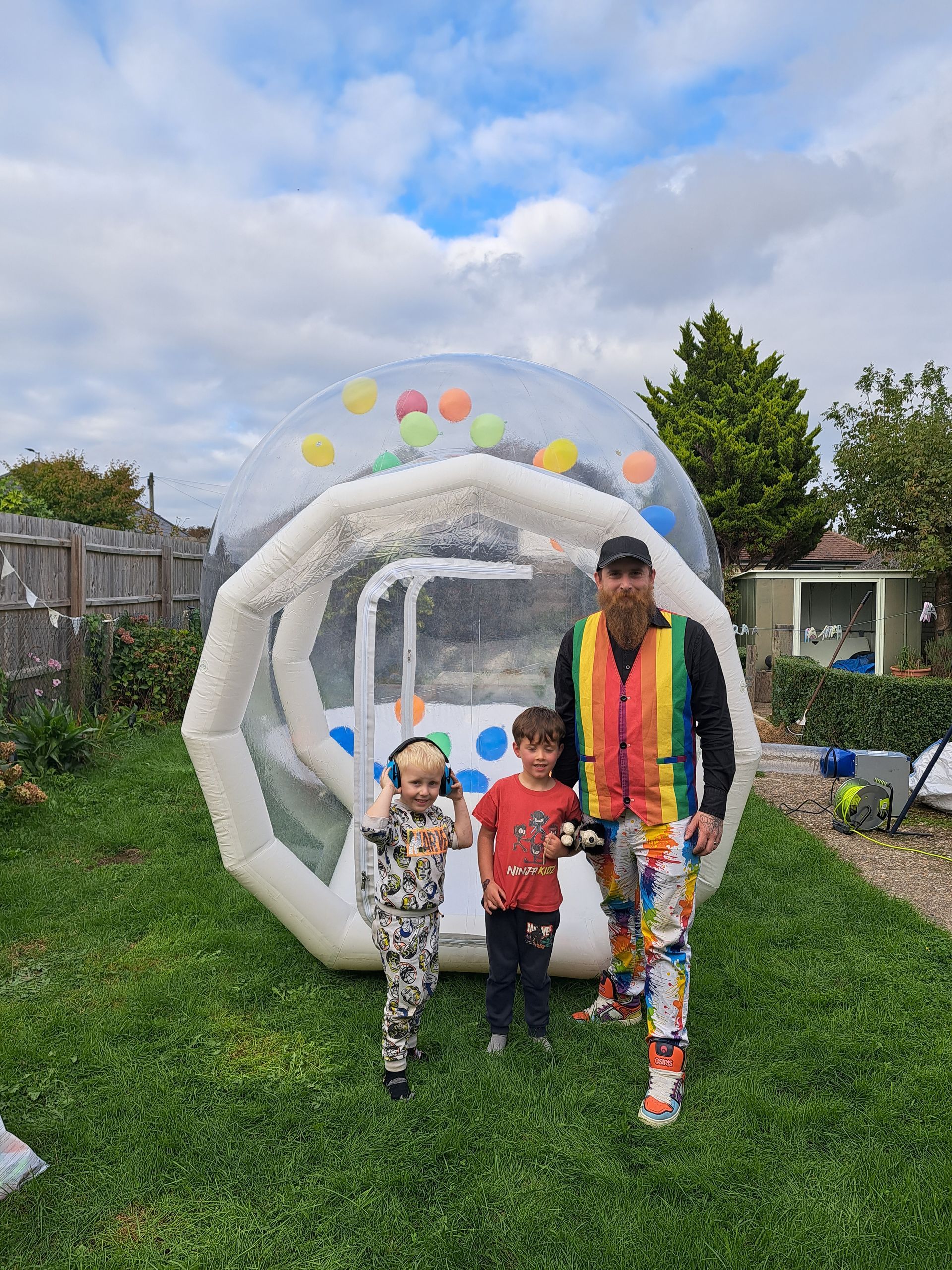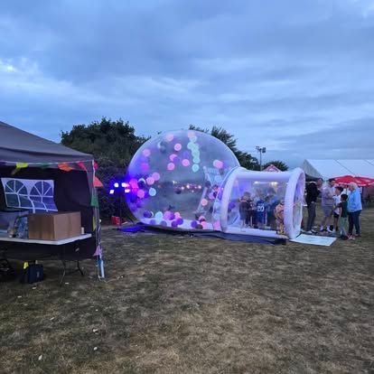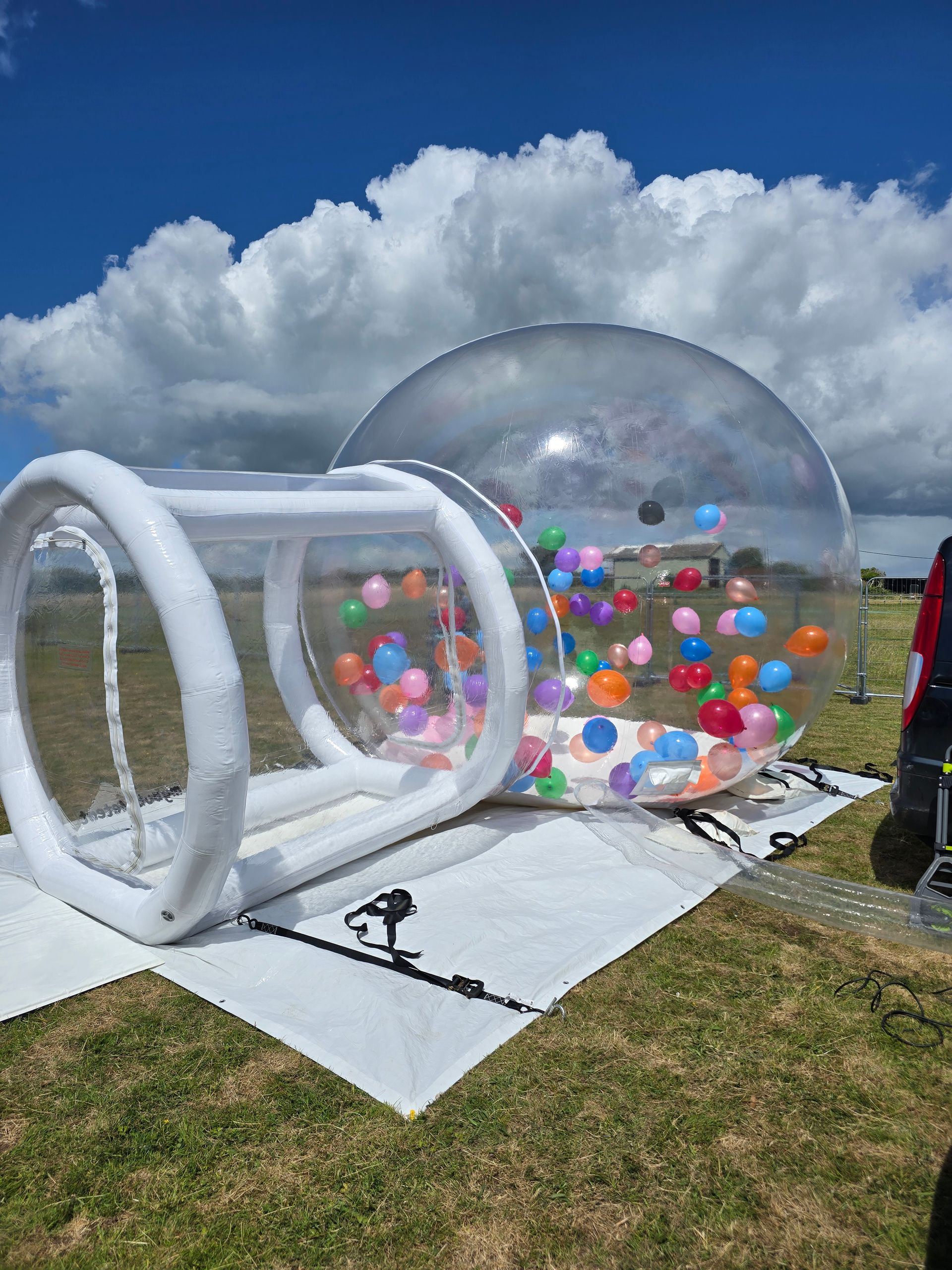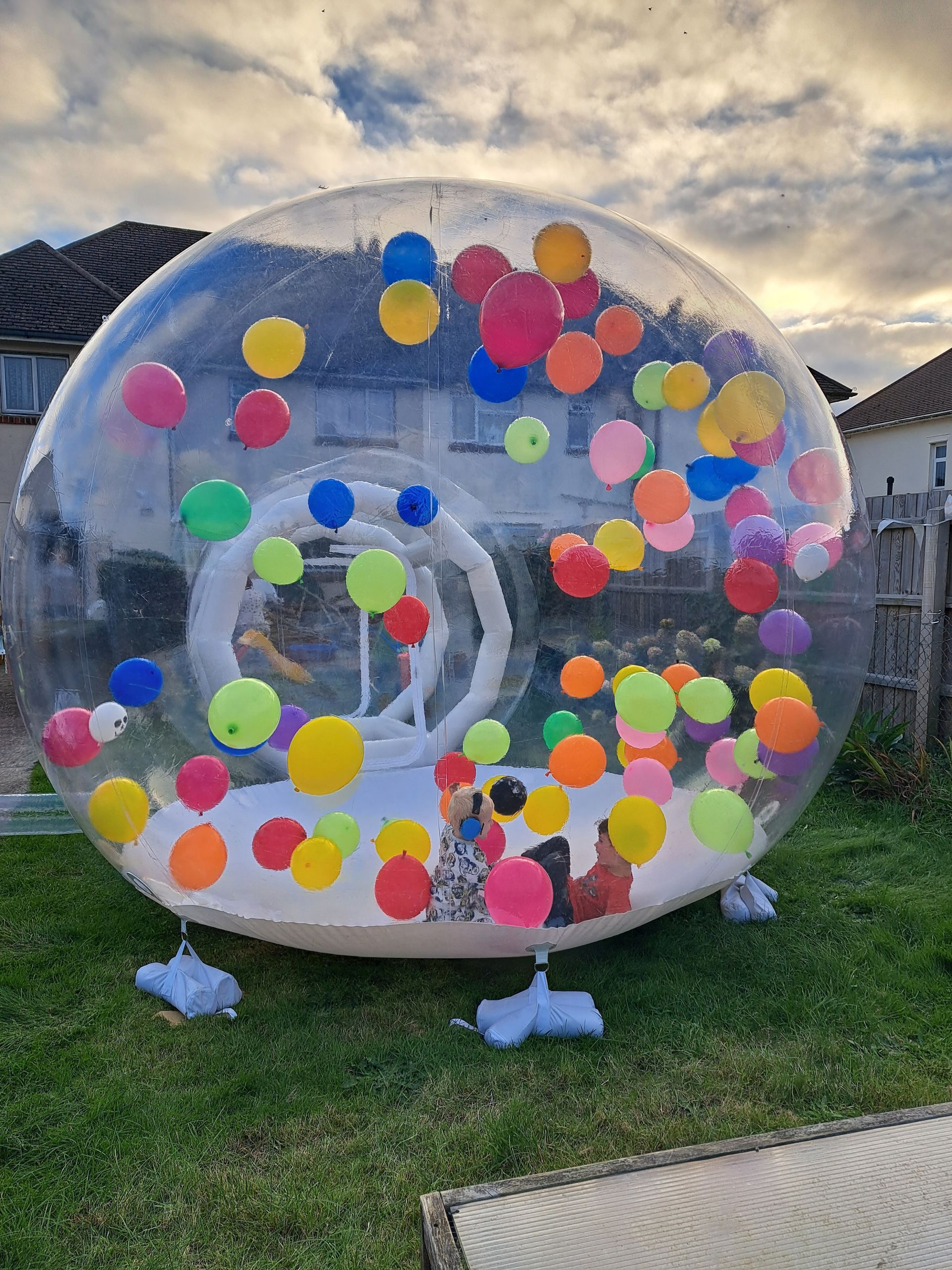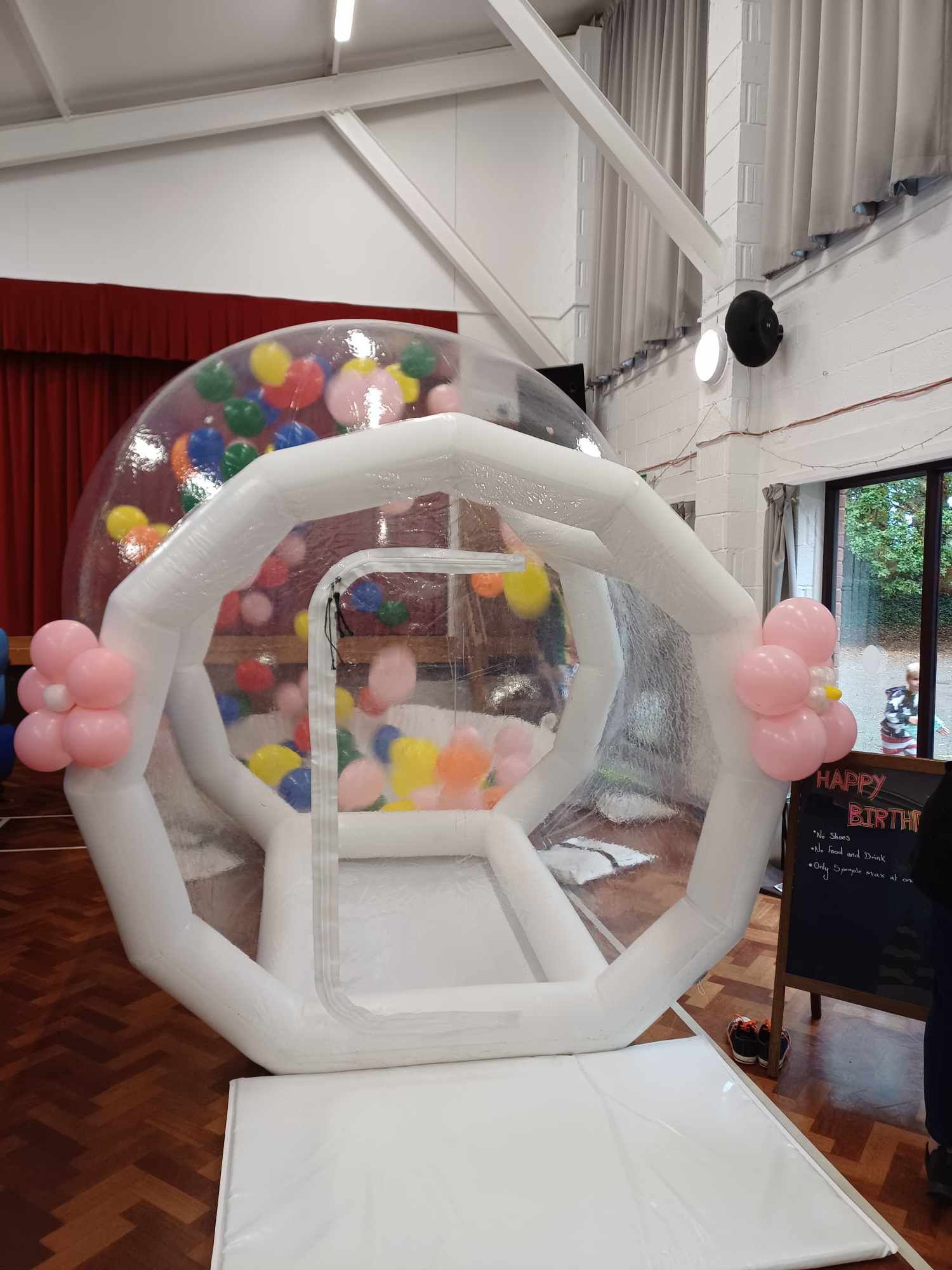 6x4m bubble house £250 which includes 100 balloons inside and attendant for upto two hours. Each hour after is charged at £75