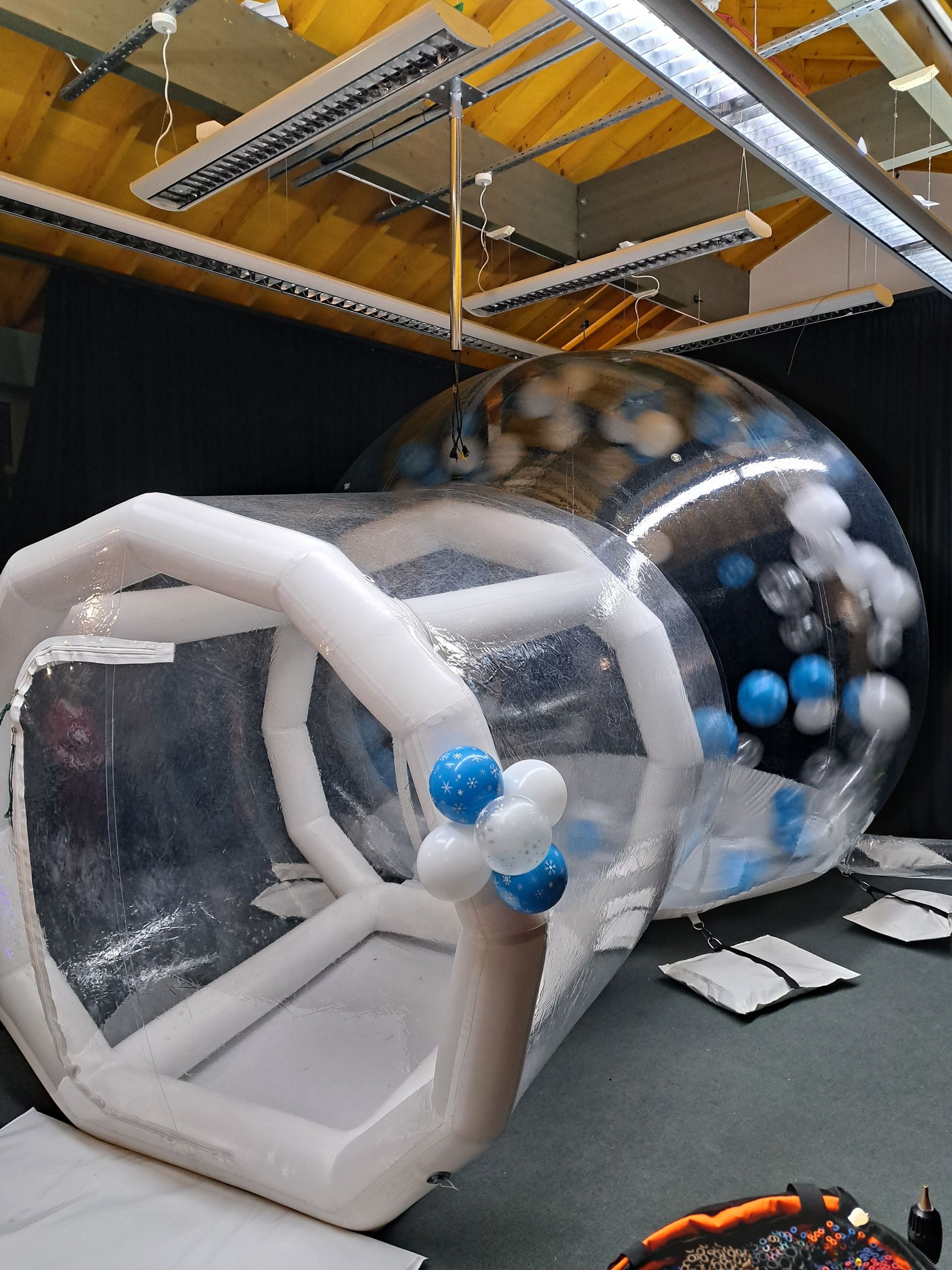 Our large 6m x 4m Bubblehouse hire comes with 100 balloons inside to wow your guests.