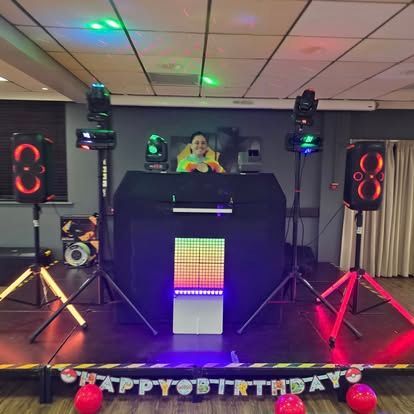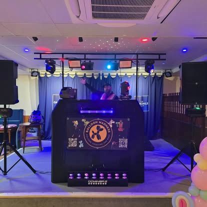 With our disco set up we provide a range of lights, dj booth, speakers, games and prizes and smoke, snow or bubble machines.