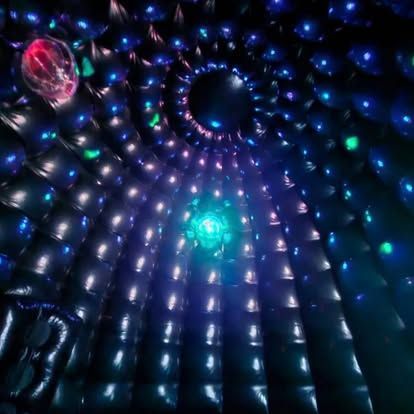 Our disco dome bouncy castle can also be linked to our disco set up for a more immersive feel.